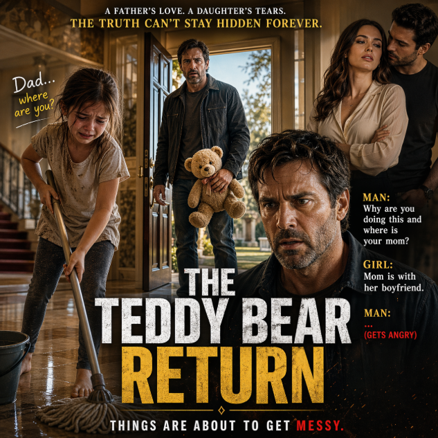 He was tall, slightly unshaven, dressed in a worn jacket that had seen better days. In his hand, he held something small and soft—a light brown teddy bear with a stitched smile and a ribbon around its neck.