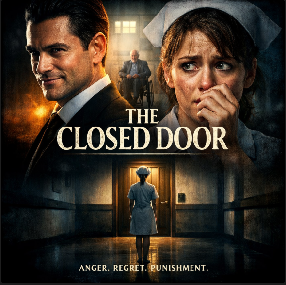 The nurse stood over the old man, her chest rising fast, her jaw clenched so tight it looked painful. Her uniform was neat, her hair tied perfectly back, but her eyes were wild—red, burning, overflowing with something far deeper than anger.