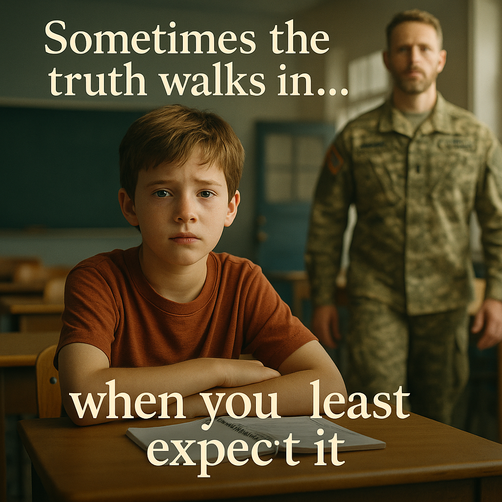 A tall, broad-shouldered man in a U.S. Army combat uniform stood in the doorway. Dust clung to his boots. His face looked exhausted, but his eyes—determined, fierce, and piercing—landed instantly on Ethan.