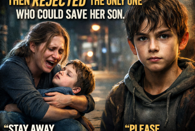 The rear tire was bent, the chain rusted, and the brake cable hung loose like a snapped vein. Ethan’s hoodie was thin, its sleeves too short, darkened by rain. Every few seconds, he wiped his face with the back of his hand, not because of the rain—but because he didn’t want anyone to see his eyes.