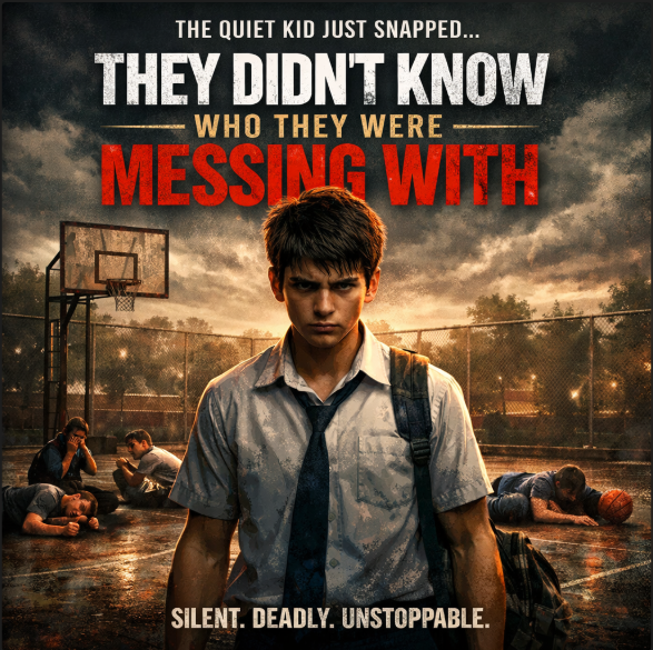 There were five of them. Bigger boys. Louder boys. Boys who knew exactly how much space they took up in the world and enjoyed taking a little more. They had the basketball—bright orange, clean, almost new. One of them bounced it lazily, watching the quiet boy like he was something strange left behind after class.